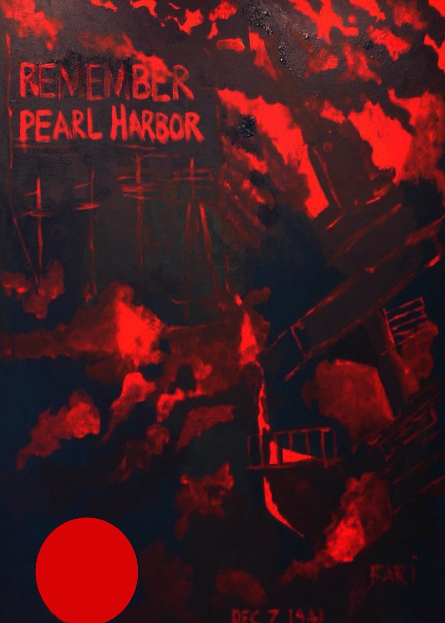 When I got home, my emotions of Pearl Harbor stirred within me. It was this burning desire that I had to express myself, somehow. So, I picked up my paint brush, as any artist would do, and began to paint my abstract onto canvas. Every paint stroke expressed my anguish for those that died that day, 74 years ago.