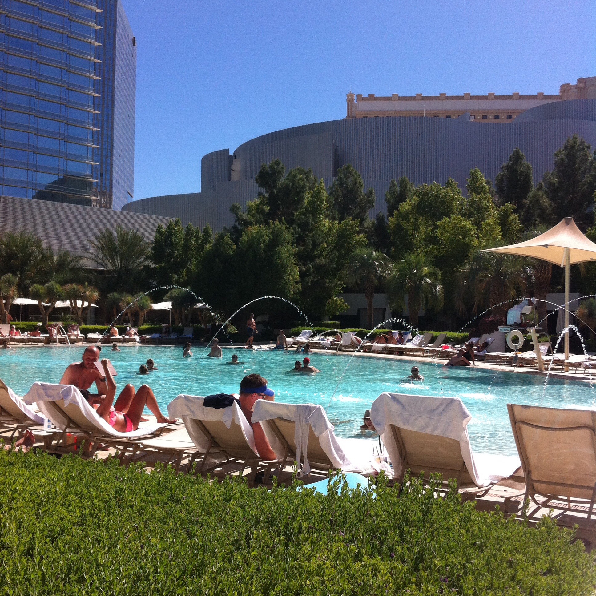 Looking up at the lavish Vegas Resort, it features an architectural skyscraper with brilliant greyish-blue glass panels, as far as the eye can see. For some strange reason I have no idea the name of this 5 Star Resort, only that it was the best-of-the-best in Las Vegas. You know, the one celebrities and rich tycoons find favourable because of the luxurious service and expensive taste.