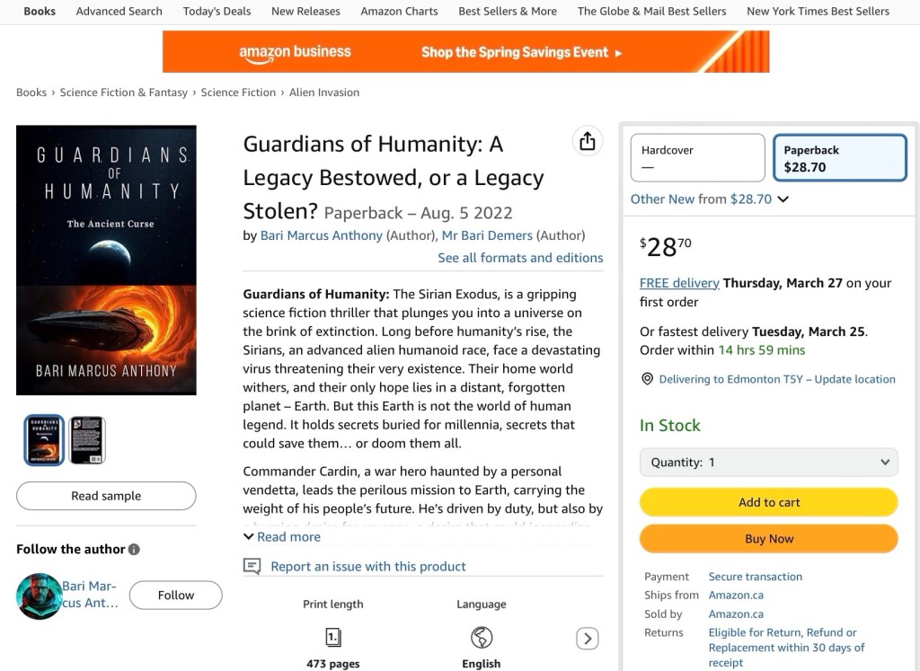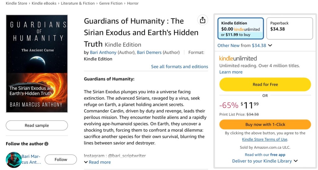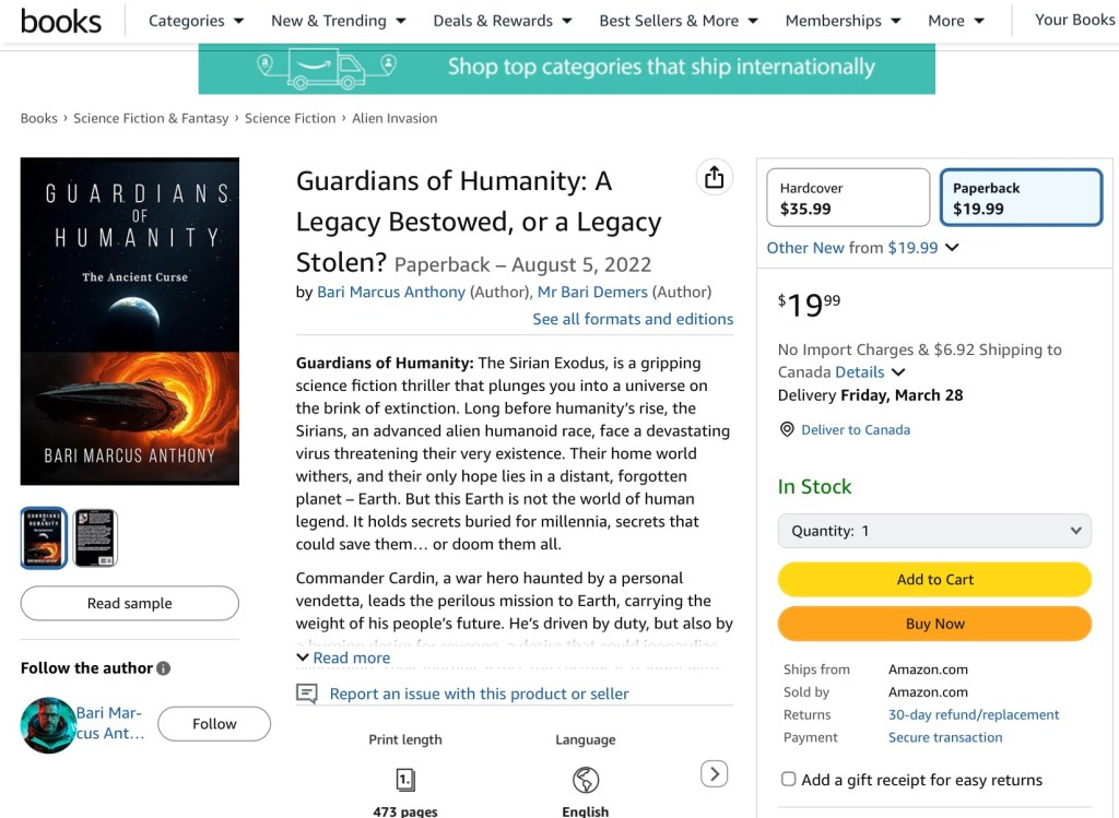 Immerse yourself in Bari Marcus Anthony’s ‘Guardians of Humanity,’ now available on Amazon. Visit the following links :